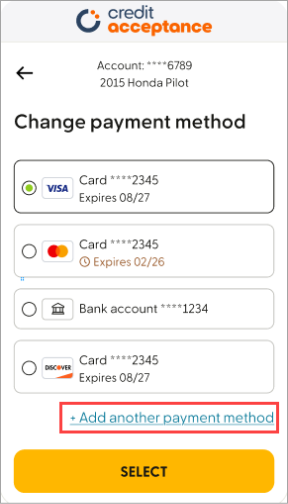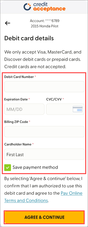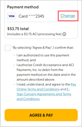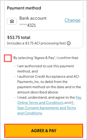 Review all payment options and fees here: How to Make Your Credit Acceptance Payment.