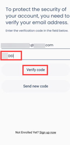 Retrieve the validation code sent to your registered email address, enter it in the field below and click Verify Code.
